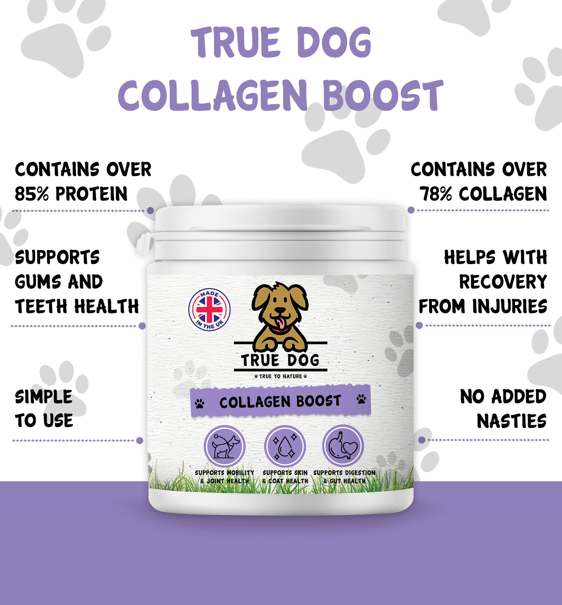 Muscle Support - collagen provides essential amino acids that contribute to muscle health. This is particularly important for those dogs who never stop running!