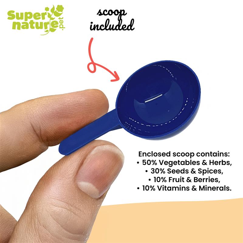 - Dogs up to 10kg - add 1 scoop per day.