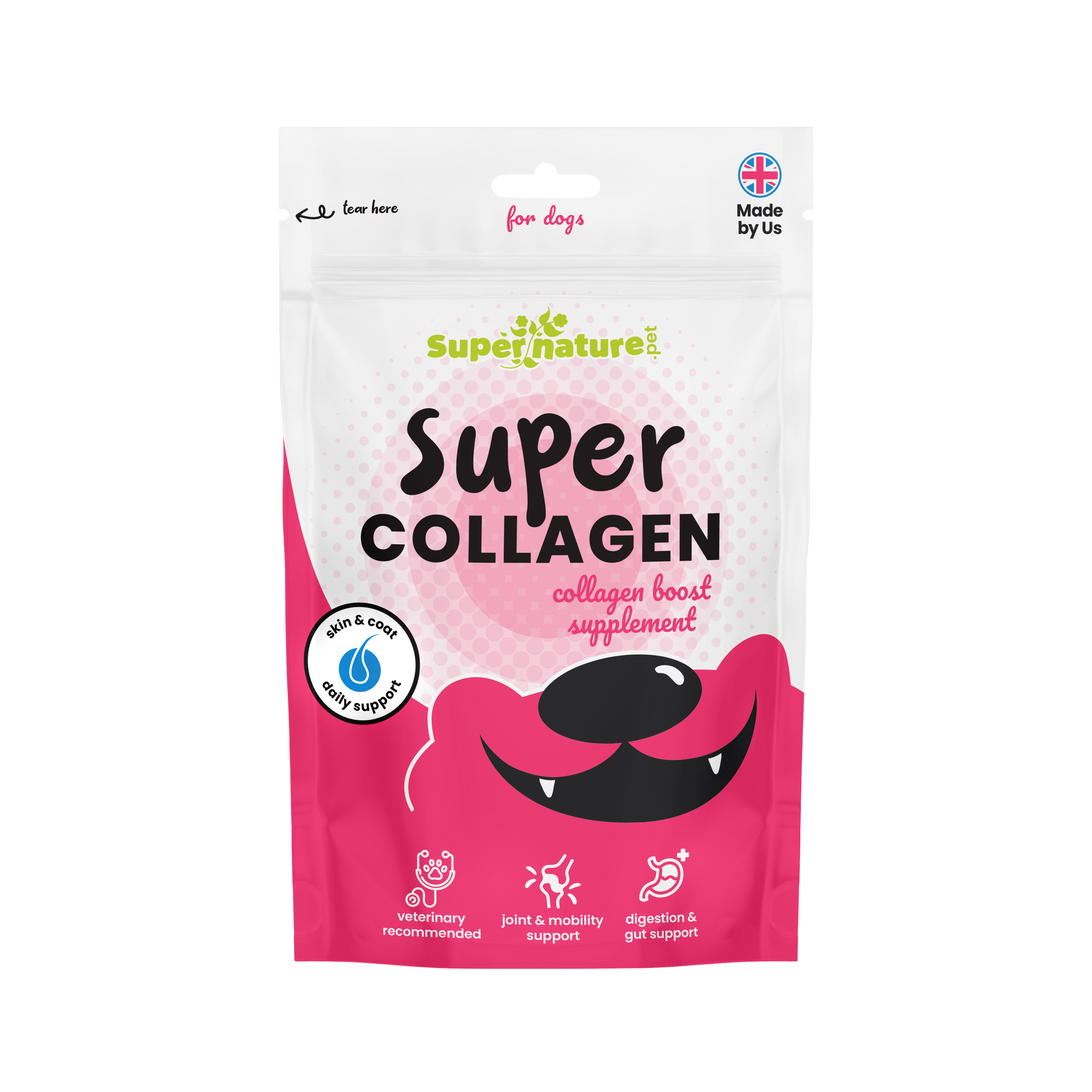 strength to various body parts. Dogs produce less collagen as they age which can lead to various health issues such as joint pain, reduced mobility, and skin problems. Our pure collagen supplement helps replenish your dog's naturally diminishing levels to support mobility & overall wellbeing. Crafted exclusively from 100% Pork, our Collagen Boost is an excellent single protein source supplement. With its high palatability, and boasting over 85% protein content, this supplement is a great addition to the diet of all dogs.